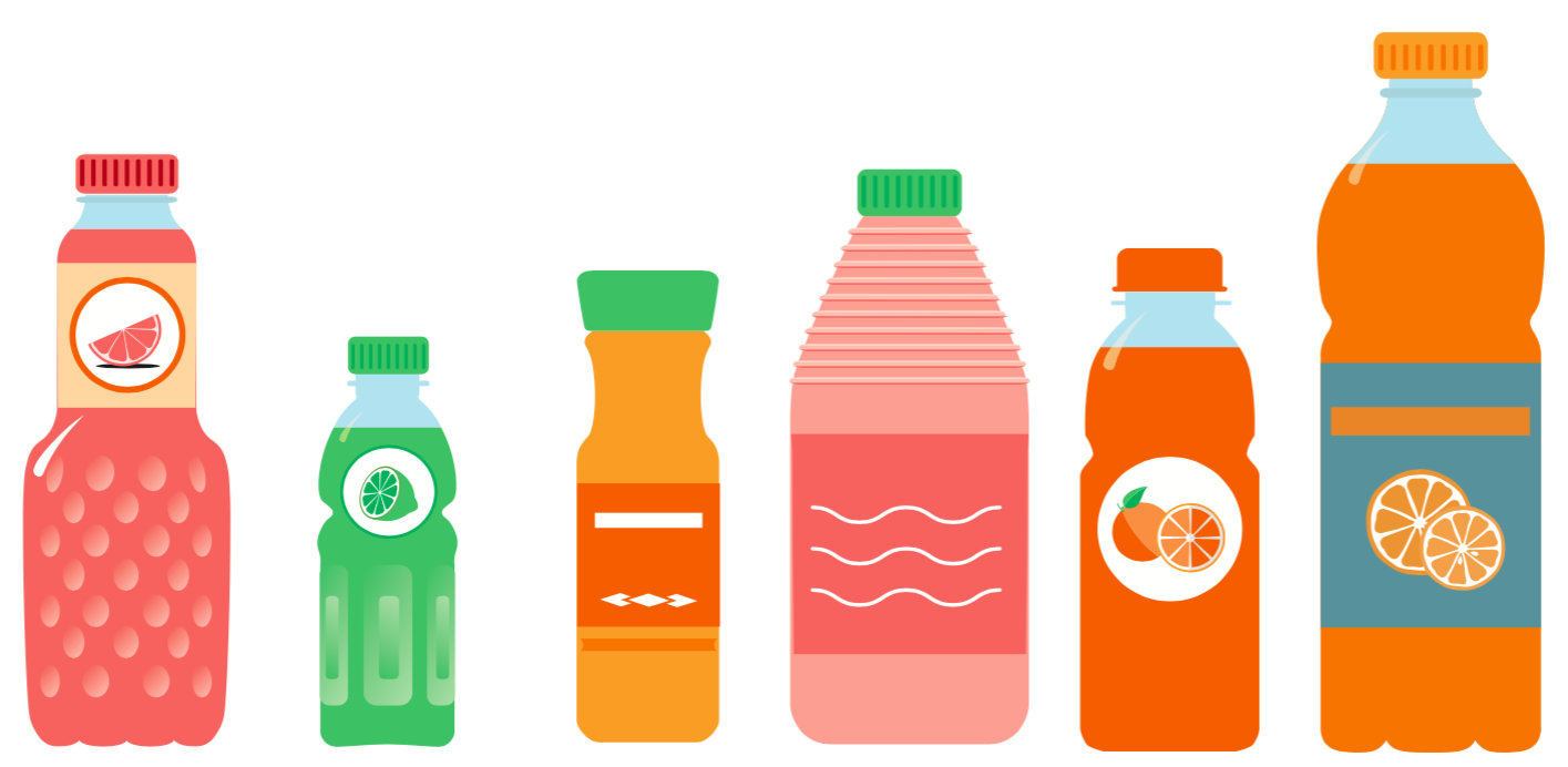 Blow-moulded plastic bottles are today the dominant bottle type for orange juice, far exceeding the use of glass bottles. The most common plastic bottles are polyethylene terephtalate (PET) followed by high-density polyethylene (HDPE).