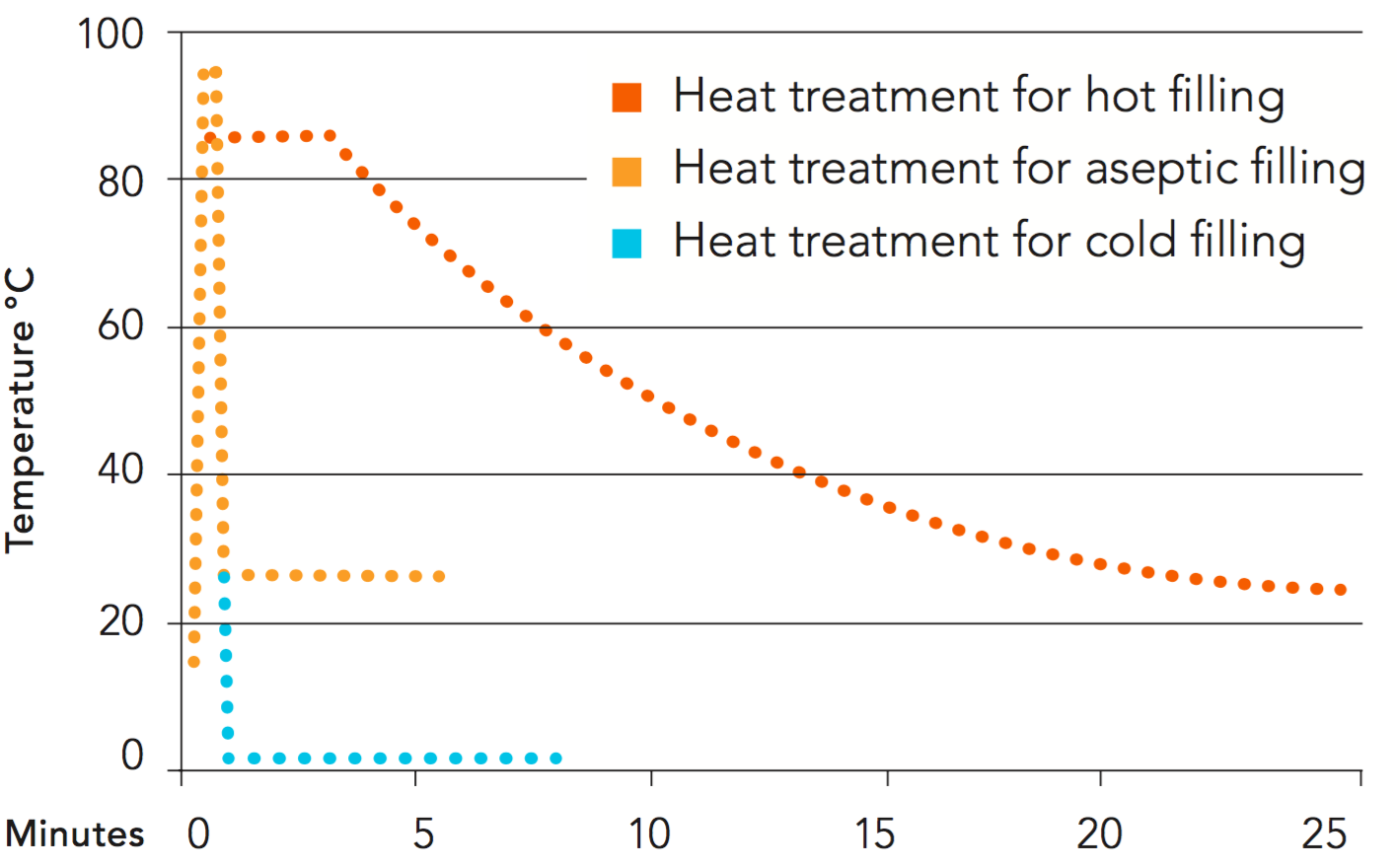 Ready-to-drink juice from concentrate and NFC sold as shelf-stable products are pasteurized and either packaged aseptically or hot filled. The types of orange juice sold in chilled form – freshly squeezed juice, NFC and ready-to-drink juice from concentrate – are not usually packaged aseptically or hot filled.