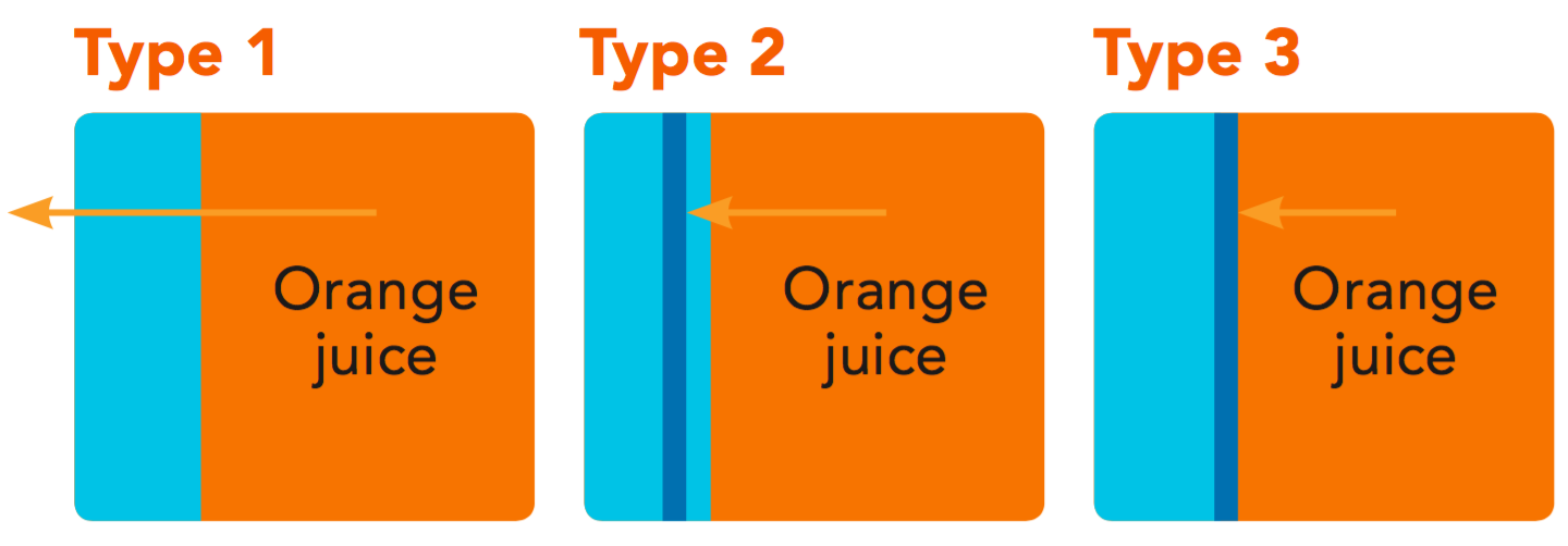 Laminated cartons used for orange juice packaging are often Type 2 packages, which allow a certain degree of flavour scalping.