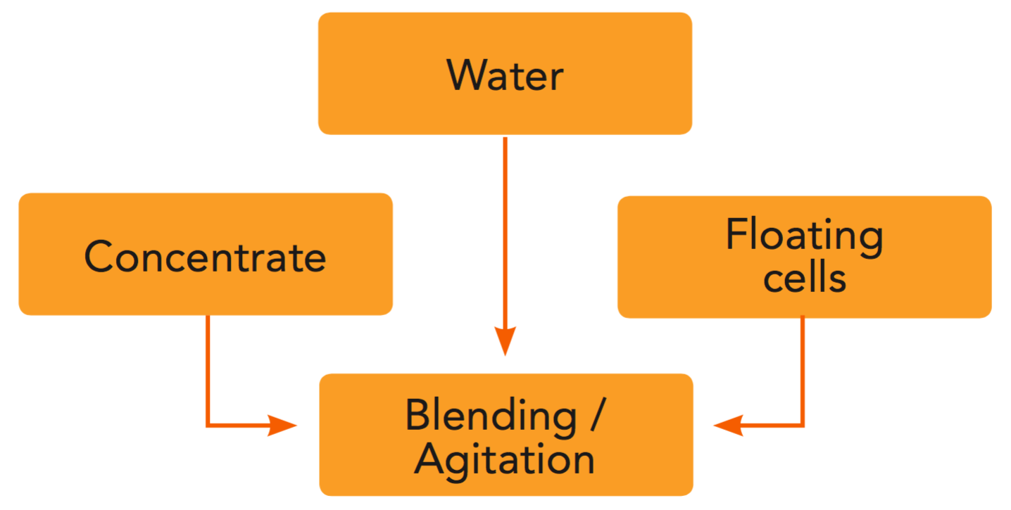 Considering that many countries have regulations defining the minimum level of vitamin C in products at the end of their shelf life, and as long shelf life (three to nine months) is a desired benefit, the importance of maintaining the vitamin C content of juice is readily understood. Oxidation also affects other significant parameters like colour (see subsection 9.2). Concentrate Figure 4.5 Water Blending / Agitation Floating cells
